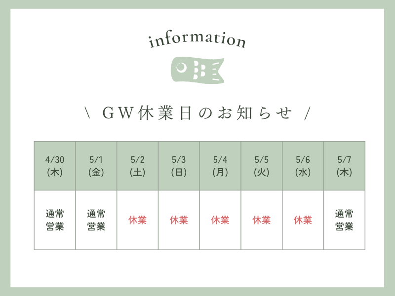 2026年GW休業のお知らせ