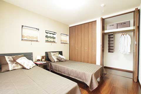 他に、リビングと続き間でありながら単独の入口もあるので、「客間」としても使う事が出来る和室やキッチンに勝手口等、実用的な部分にも配慮しました。
